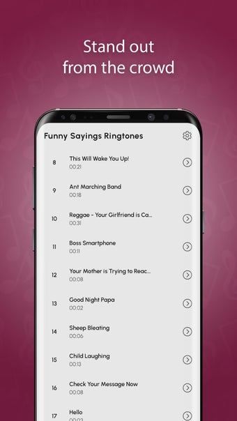 Funny Sayings Ringtones viene con una interfaz sencilla, limpia y fácil de usar que hace que sus usuarios accedan a la aplicación mucho más fácilmente.